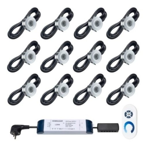Im Set nicht enthalten sind Lochsäge und Feuchtraumdose. Die Leuchten sind nicht verbaut und müssen selbst eingebaut werden.