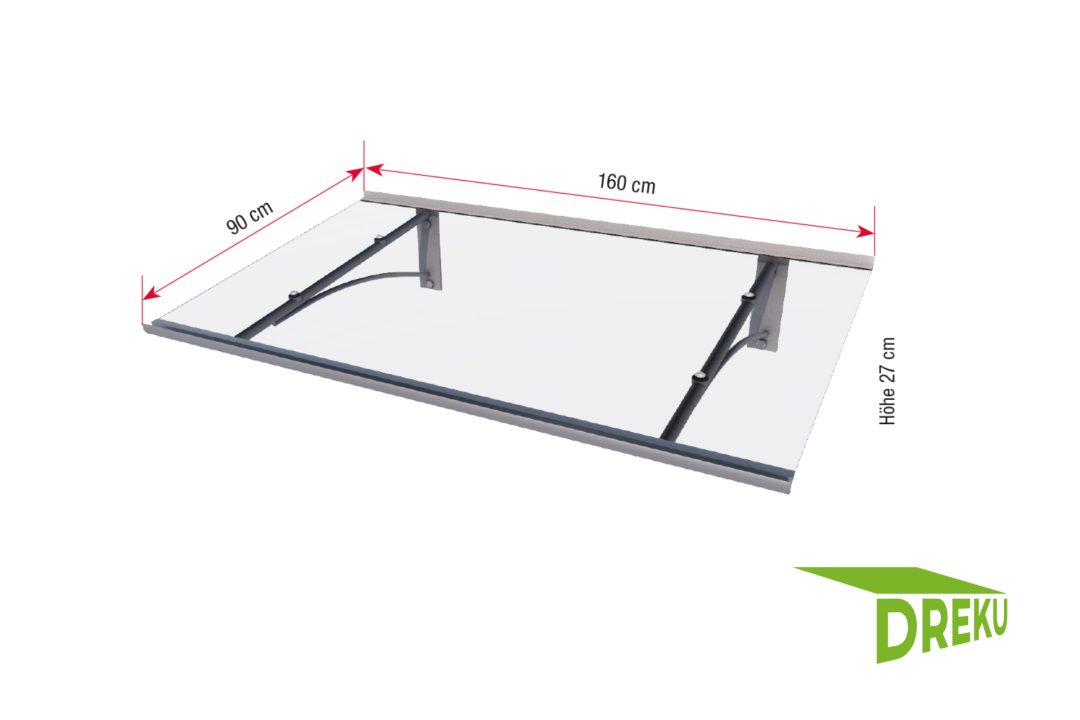 Die Kombination aus pulverbeschichtetem Aluminium und klarem Acrylglas verleiht dem Pultvordach Neumünster eine sehr hohe Haltbarkeit und edle Optik.